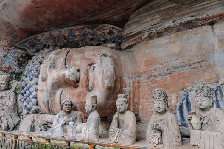 大足石刻位于重慶市大足區(qū)境內(nèi),是唐、五代、宋時所鑿造,明、清兩代亦續(xù)有開鑿,F(xiàn)為世界文化遺產(chǎn),世界八大石窟之一。