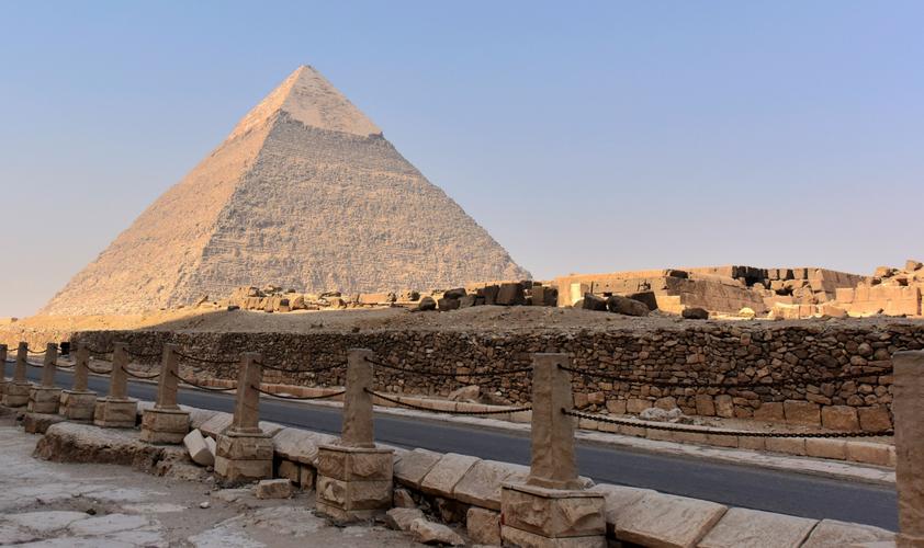 胡夫金字塔 胡夫金字塔位于埃及首都開羅西南約10公里的吉薩高地。胡夫金字塔是埃及現(xiàn)存規(guī)模最大的金字塔,又稱吉薩大金字塔,是古埃及第四王朝的法老胡夫的金字塔,主要作為其陵墓,也是世界上最大、最高的埃及式金字塔。約建于前2580年,完工于前2560年。位于吉薩金字塔群的中央一座,也是最為高大的,被喻為“世界古代八大奇跡”之一。 在埃及境內(nèi)已發(fā)現(xiàn)的110座金字塔中,吉薩高地的祖孫三代金字塔——胡夫金字塔、海夫拉金字塔和門卡烏拉金字塔是最古老的金字塔。 金字塔,形狀像“金”字,它是一種方底尖頂?shù)氖鼋ㄖ铮枪糯<奥裨釃?guó)王、王后或王室其他成員的陵墓。它既不是金子做的,也不是我們通常所見的寶塔形。是由于它規(guī)模宏大,從四面看都呈等腰三角形,很像漢語中的"金"字,故中文形象地把它翻譯為"金字塔"。