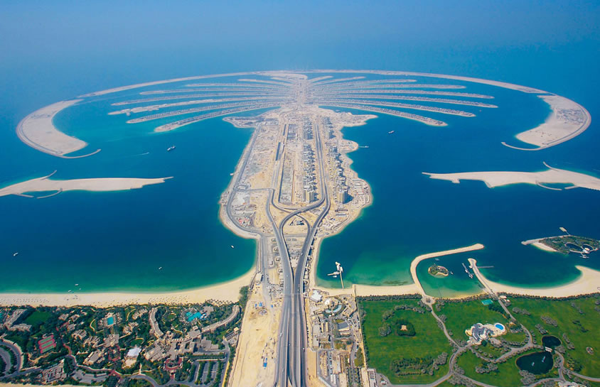 棕櫚島 棕櫚島是建立在迪拜的三座人工群島的總稱。它分為朱美拉棕櫚島、杰貝阿里棕櫚島、迪拉人工島。 每個島上都有大量的別墅、公寓發(fā)售,為整個迪拜酋長國增添了諸多供不應(yīng)求的海灘。耗資140億美元打造而成的迪拜棕櫚島被譽為“世界第八大奇跡”。 每座島嶼包括三部分:“樹干”、“樹冠”和新月型圍壩。島上還將種植12000棵棕櫚樹,這些樹苗正在位于朱梅拉的苗圃里栽培。整座島嶼就是一個巨大的避暑勝地和游玩天堂,上面擁有2400套海邊住房,可以入住5000人。另外,還有運動場、健身房和電影院等設(shè)施。