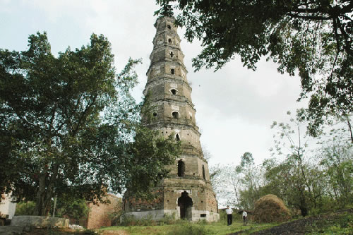 貴港市城東五里的羅泊灣,形如蘿卜,因而原名蘿卜灣。灣上有一座巍峨古塔,名曰安瀾,又曰漪瀾,塔高九層約30多米,底層周長36.62米,墻厚1.9米,塔身呈八角形,共有35個形狀不同的窗口,坐南向北臨江而立,建筑風格非常獨特。此塔建于清嘉慶二十三年(1818),已經(jīng)有200多年。昔日登塔可望江城,江中百舸爭流,浪擊飛舟,城上高樓林立,車水馬龍,人來人往,無限風光在塔峰。此塔遭受過無數(shù)次特大洪水的沖撞和雷電轟擊,仍巋然不動,穩(wěn)如泰山,塔頂?shù)耐咂坏袈洌頉]有毀損,保留全貌。