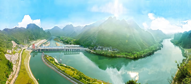 樂灘(惡灘)水電站庫區(qū)的紅水河源出于云南省沾益縣的南盤江,經(jīng)貴州流入廣西,是廣西以壯族為主體的少數(shù)民族的母親河、太陽河。紅水河是中國少有的水電資源。正在擴(kuò)建中的樂灘(惡灘)水電站預(yù)算投資39.7億元,裝機(jī)容量為60萬千瓦,年均發(fā)電量為35億千瓦時(shí),是紅水河上的十個(gè)梯級(jí)水電站之一。