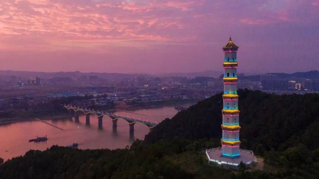 沿著棧道拾級(jí)而上,途經(jīng)風(fēng)景宜人、空氣清新。在炳蔚塔登高遠(yuǎn)眺,可以觀賞延綿峰巒、俯瞰西江大橋、領(lǐng)略百舸競(jìng)渡,潯江美景盡收眼底。
