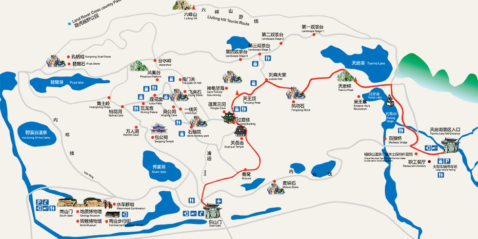 嵖岈山主要由南山門區(qū)、南山、北山、六峰山、天磨湖、琵琶湖六大景區(qū)組成,景區(qū)內(nèi)石、山、水相依,峽、谷、峰相連,南山、北山、六峰山毗鄰,秀蜜湖、琵琶湖、天磨湖散布其中,共有南山門、東山門和北山門3個(gè)山門。