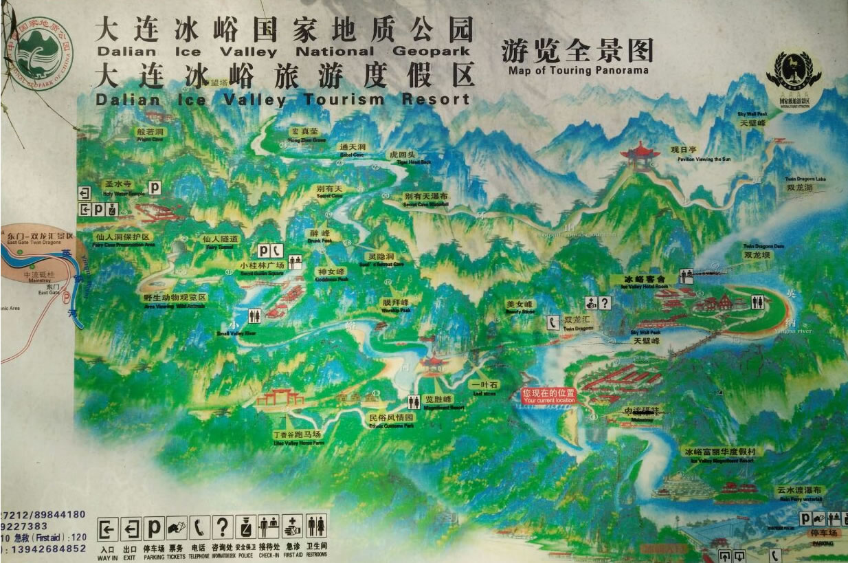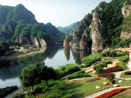 所謂北溝,指的是英納河流經(jīng)的溝谷,而南溝則是指小峪河流經(jīng)的溝谷,冰峪的主要景點大都被兩條河貫穿著。英納河是滿語“因納輝”的音譯,意為美麗的地方,河長94.9公里,是莊河境內(nèi)最長的一條河流。莊河市的淡水資源占大連地區(qū)首位,而英納河的淡水則在莊河市的首位。為了增加碧流河水庫的容量,大連市已于2001年5月引英納河的水進入了碧流河水庫。據(jù)化驗,在英納河水中含有23種微量元素,具有抗癌和健身爽膚等多種功效。冰峪石林地貌比較集中,山峰連成一片,而有的地方卻是孤峰突兀,頗有點小桂林的味道。又有人稱其為“天然大盆景園”,因為景區(qū)內(nèi)有“大象吸水”、“金雕”、“豬馱龜”等許多奇景。