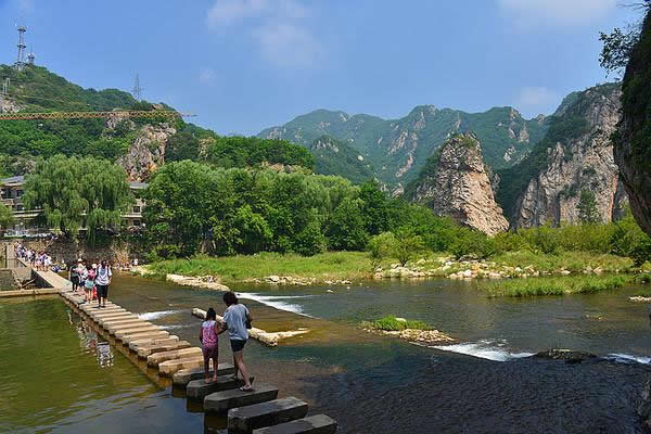 云水渡是冰峪溝風(fēng)景區(qū)的精華所在,兩岸峭壁秀絕,奇峰怪石林立。其中有一根石柱,高40米,稱之為“中流砥柱”,它周圍的水域叫“龍門潭“,因潭中鯉魚很多,取“鯉魚跳龍門”之意。