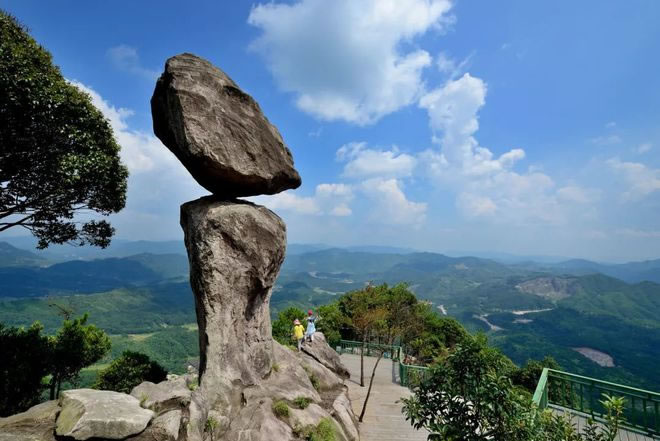 • 特色:兩塊巨石相疊而成,高約27米,被譽(yù)為“八閩第一奇石”。上石如菇傘,下石似菇柄,站石下人不及菇柄一半。