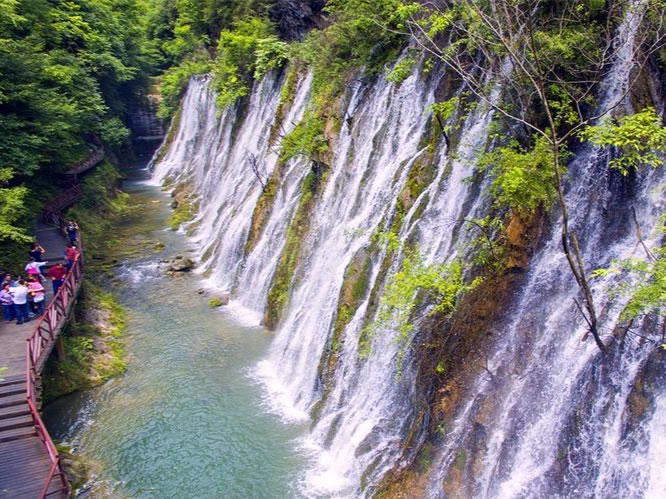 • 上午:游客中心→徒步棧道(落花湖→迎賓瀑→碧水潭)→玻璃棧道→鷹嘴崖