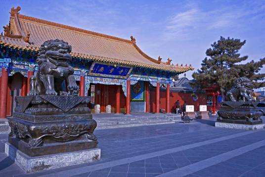 大召,明代稱“弘慈寺”,歷史上又有“銀佛寺”“大乘法輪召”“甘珠爾廟”“帝廟”等多種稱謂。大召,是一座大藏傳佛教寺院,是呼和浩特最早建成的黃教寺院,也是蒙古地區(qū)僅晚于美岱召的蒙古人皈依黃教初期所建的大型寺院之一,屬于格魯派(黃教)。占地面積約3萬(wàn)平方米,其中建筑面積為8000多平方米。大召寺院座北向南,總體布局是伽藍(lán)七堂形制,由正院、東倉(cāng)和西倉(cāng)三大院落單位成,東西兩倉(cāng)各有倉(cāng)門,北端互通構(gòu)成環(huán)繞寺廟的甬道。主軸線上由山門、天王殿、菩提過殿、大雄寶殿和九間樓組成。大召的藏品豐富,堪稱大召“三絕”的銀佛、龍雕、壁畫佛殿內(nèi)的各種彩塑、金銅造像、晾佛節(jié)展開的巨幅唐卡、108部的甘珠爾經(jīng)卷,以及宗教活動(dòng)使用的各種法器,面具等都是較珍貴的歷史文物和藝術(shù)珍品。