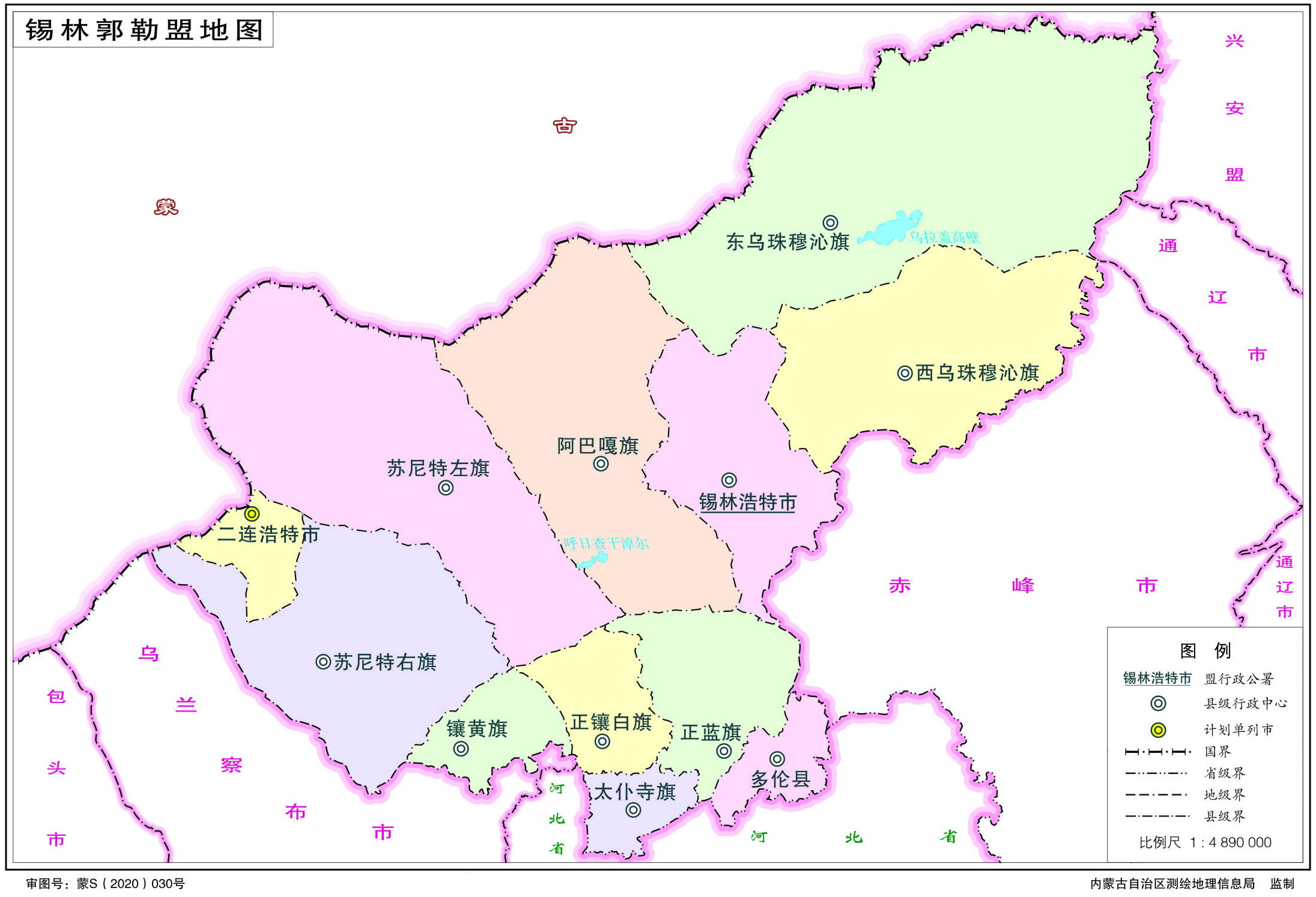 錫林郭勒盟轄2個(gè)縣級市、1個(gè)縣、9個(gè)旗、1個(gè)管理區(qū):