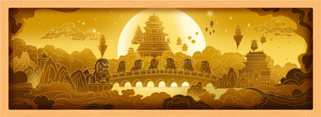 盧溝曉月紙雕燈:紙雕燈圖案,靈感來自“盧溝曉月”燈組,曙光未露、明月映照下,盧溝橋的美景盡收眼底。行走在游園燈會(huì)中,打一盞紙雕燈,氛圍感滿滿~