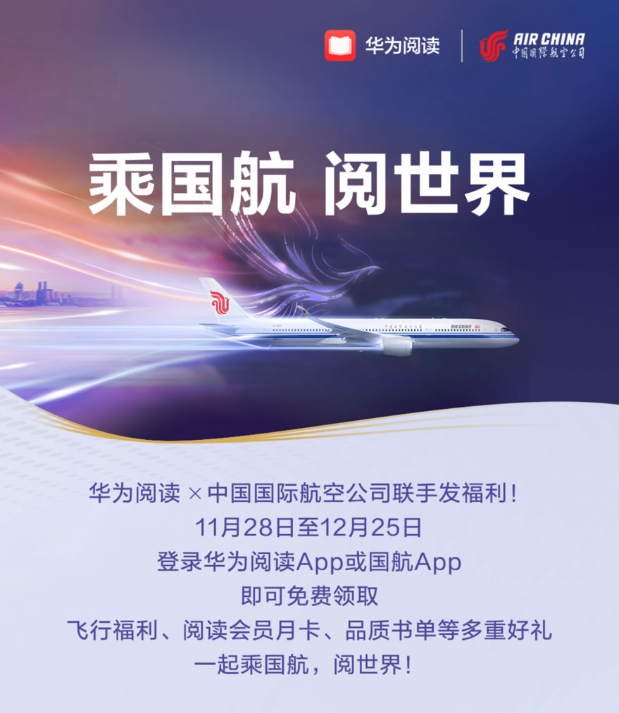 華為閱讀啟動(dòng)“乘國航 閱世界”國航伴讀計(jì)劃,3重好禮免費(fèi)領(lǐng)!