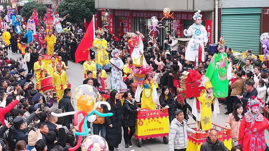 湖南省汨羅市長樂鎮(zhèn)“長樂抬閣故事會”民俗活動現(xiàn)場。(胡清 攝)