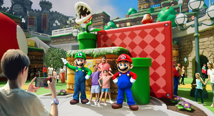 項(xiàng)目由五大官方主題宇宙聯(lián)動(dòng),從踏入樂園中央的 “星際之光廣場(chǎng)(Celestial Park)” 開始,游客將穿越由發(fā)光步道串聯(lián)的五大主題世界,每一處均由環(huán)球影業(yè)與頂級(jí)IP聯(lián)合打造:第一個(gè)超級(jí)任天堂世界(Super Nintendo World)由任天堂(Nintendo)工作室操刀, 作為北美首個(gè)、全球最大的任天堂主題區(qū),游客將佩戴 “能量手環(huán)(Power-Up Band)” 進(jìn)入1:1還原的蘑菇王國(guó)。核心設(shè)施 “馬里奧卡丁車:庫(kù)巴的挑戰(zhàn)(Mario Kart: Bowser’s Challenge)” 通過AR眼鏡與動(dòng)態(tài)軌道結(jié)合,讓玩家在虛實(shí)交織的賽道上發(fā)射虛擬龜殼;家庭向的 “耀西的冒險(xiǎn)騎行(Yoshi’s Adventure Ride)” 則穿越彩虹賽道與食人花叢林,車載攝像頭自動(dòng)生成動(dòng)態(tài)紀(jì)念照片。
