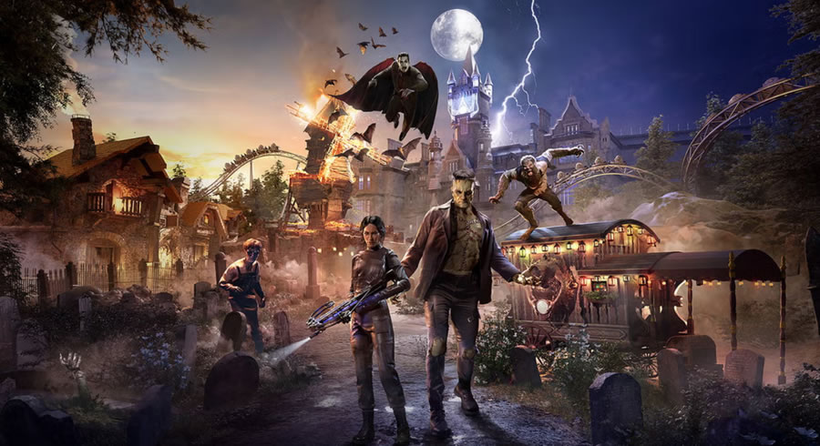 另一個(gè)園區(qū)黑暗宇宙(Dark Universe)則致敬環(huán)球經(jīng)典怪物電影,暗黑美學(xué)貫穿始終。標(biāo)志性設(shè)施 “德古拉的詛咒:自由墜落(Dracula’s Curse: Freefall Tower)” 結(jié)合全息投影與百米極速墜落,游客在驚悚劇情中與吸血鬼纏斗; “科學(xué)怪人:命運(yùn)實(shí)驗(yàn)室(Frankenstein’s Fate Lab)” 則為多結(jié)局互動(dòng)劇場(chǎng),觀眾通過手機(jī)APP投票決定人造人的善惡,觸發(fā)不同逃生路線。