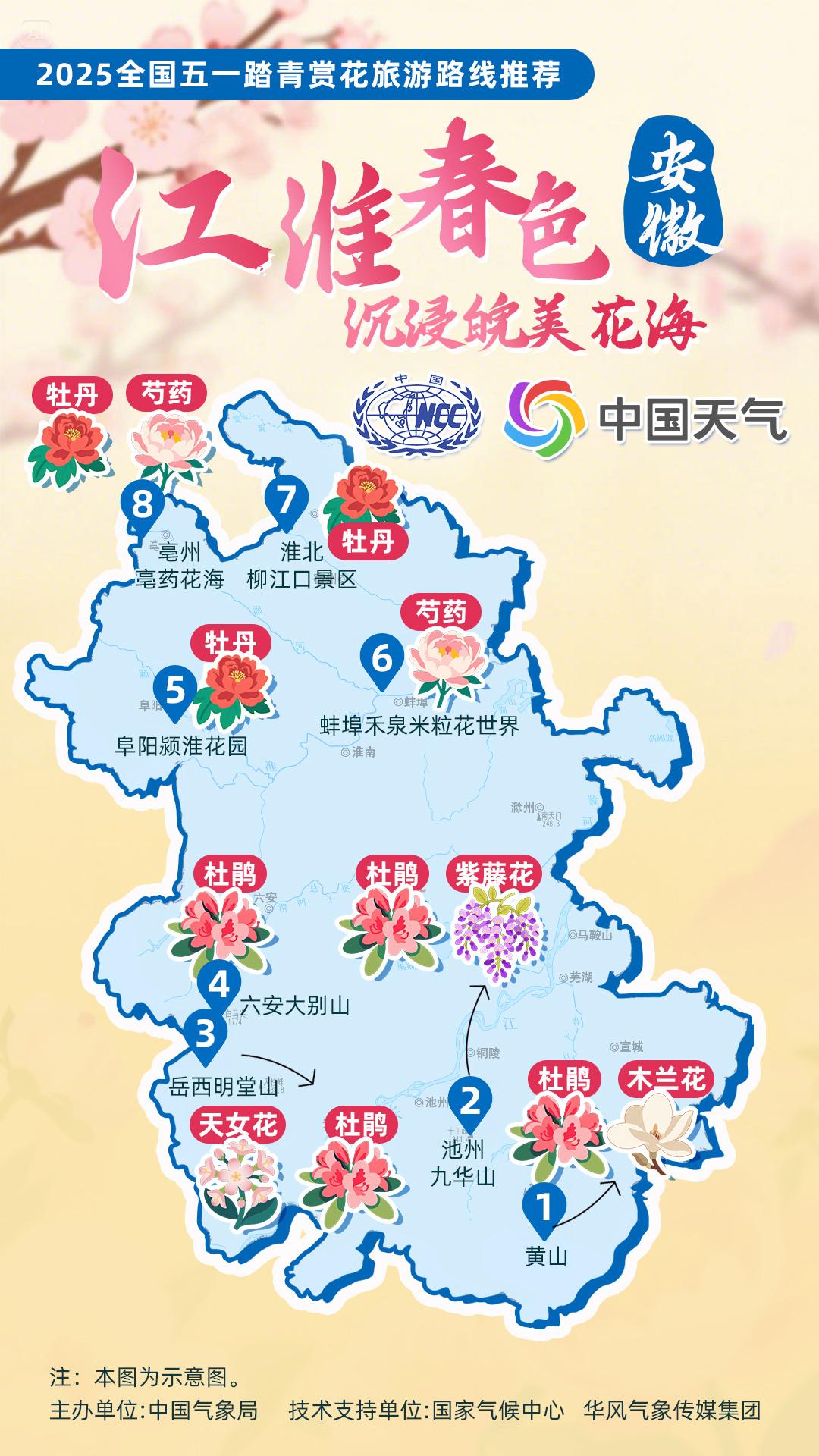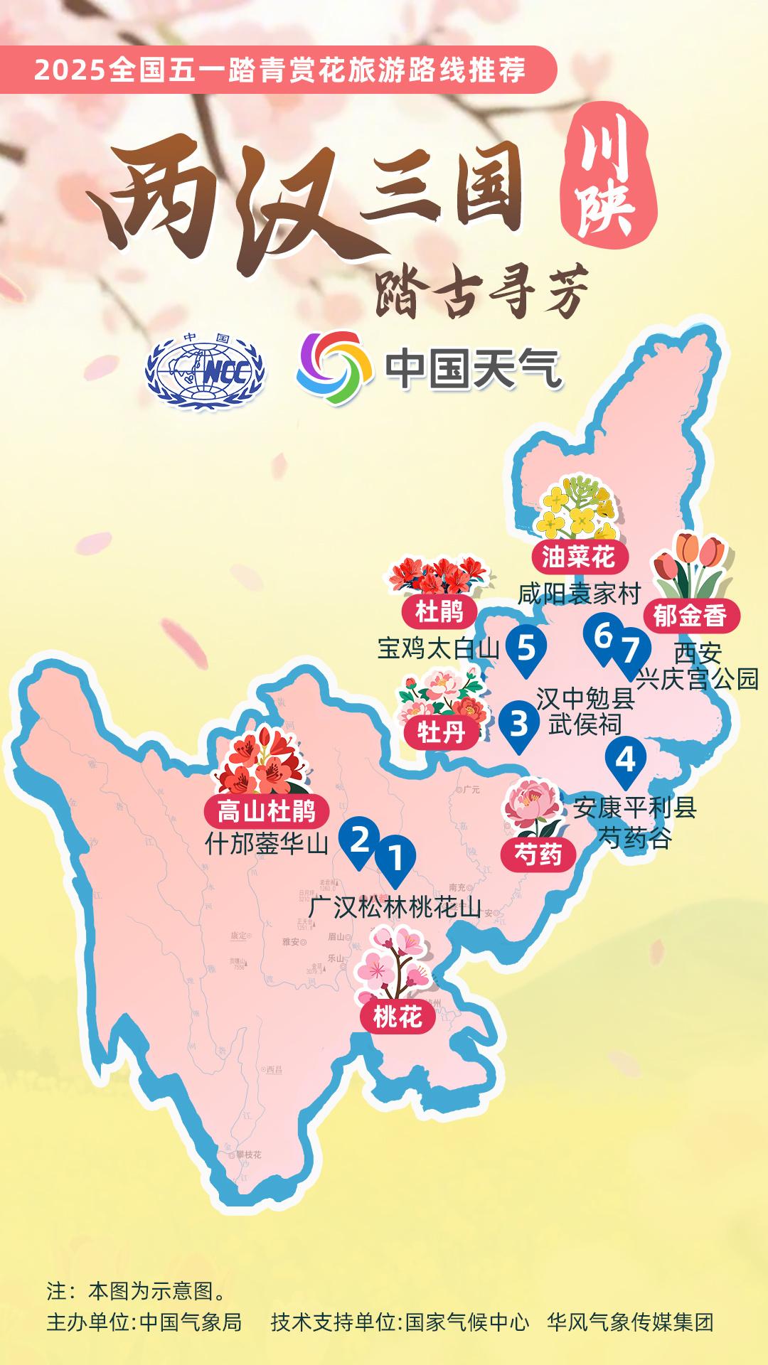 正值杏花、杜鵑花等春花盛放時節(jié),中國氣象局針對全國景點主要花品,對其生長積溫和物候期進行關(guān)聯(lián)性分析,建立多種花品的最佳觀賞期預(yù)報模型,提供賞花預(yù)報服務(wù)。在此基礎(chǔ)上,國家氣候中心、華風氣象傳媒集團依據(jù)歷史氣候資料和今年氣候預(yù)測,參考花期模型預(yù)報結(jié)果,結(jié)合區(qū)域地理分布、小氣候特征和旅游景點等信息,推出4月下旬至5月上旬適宜踏青賞花的線路。