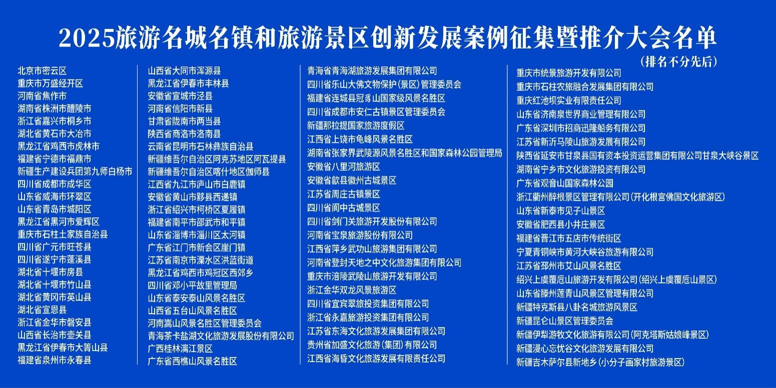 2025年度旅游名城名鎮(zhèn)和旅游景區(qū)創(chuàng)新發(fā)展案例名單