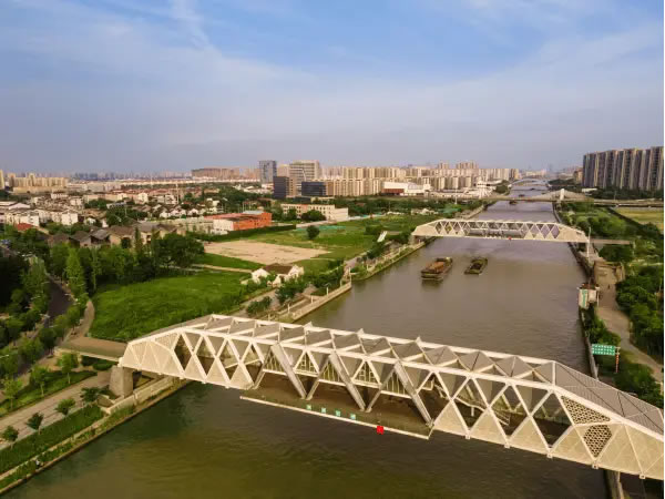 在滸墅關,順應民生所需,以文脈傳承、文化賦能滿足人民群眾對美好生活的向往,“紅房子”并非個例。就在距“紅房子”咫尺之遙的大運河上,造型別具一格的滸關南橋、北橋吸人眼球。橋身,大量運用三角形與菱形元素,充分彰顯現(xiàn)代結(jié)構美學;橋中,幾座“尖頂閣樓”突起,是特意營造的觀水場所;橋下,運河汩汩流淌,一艘艘貨輪推開波紋向前駛?cè)ァ?/p>