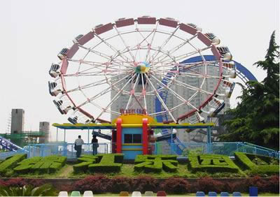 由上海游藝機公司建造的“上海大轉盤”是我國第一座超百米的巨型摩天輪,于 2002 年 5 月 1 日正式運轉。“上海大轉盤”總高度 108 米;圓盤直徑 98 米;總重量 580 噸;抗強風 12 級;搭載客艙 42 個;最大載客量1260 人 / 小時;運行一周約 25 分鐘。圓盤還配有電腦程控的高功率彩燈,晚間狀如一輪高懸空中的彩色明月,美輪美奐。