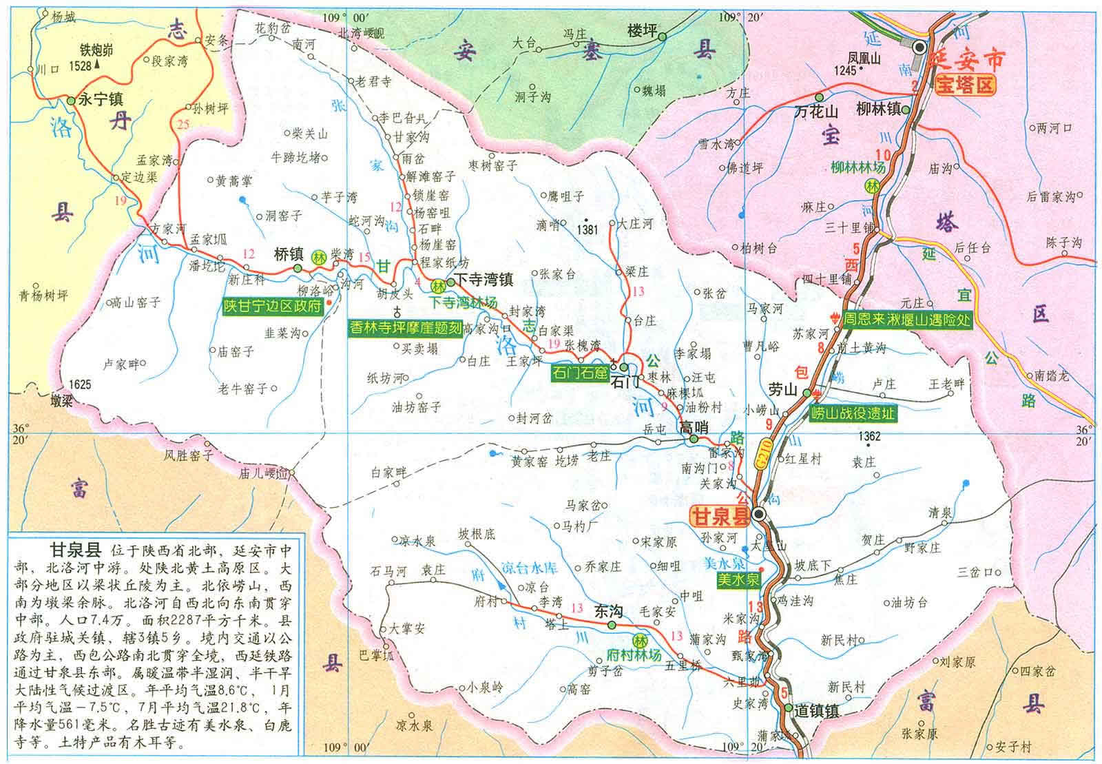 甘泉縣轄3個(gè)鎮(zhèn)、5個(gè)鄉(xiāng):