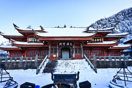 報(bào)國(guó)寺,是峨眉山的入山第一座寺廟,始建于明萬歷年間(1573—1619),原名會(huì)宗堂,清初遷建于此,順治九年重建;康熙四十二年(1703),康熙皇帝取佛經(jīng)“四恩四報(bào)”中“報(bào)國(guó)主恩”之意,御題“報(bào)國(guó)寺”匾額,王藩手書;報(bào)國(guó)寺歷史上經(jīng)過數(shù)次修葺,寺院得以完整保存。