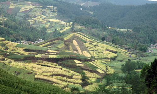 自然地理 含增鎮(zhèn)屬丘陵、高山相間地形; 盤江(通口河)東岸的吳家后山、乾元山為大山地帶,東南麓為丘陵。最高海拔為2106米,最低海拔540米,地型起伏變化大,地貌大多為喀什特,基巖溶洞陡坎多,巖石裸露地面多, 地質(zhì)多為石灰石風(fēng)化層,境內(nèi)年降雨量700--1200毫米左右,氣溫較低,年平均氣溫15℃,平均日照900時(shí)左右,林木生長(zhǎng)茂密,屬國家天然林天保護(hù)區(qū)。2000年底,該鎮(zhèn)有耕地面積6214.8畝, 其中田1791畝,地4423.8畝,天然林保護(hù)面積73130畝,森林覆蓋率55%,糧食作物主要以玉米、水稻、小麥為主, 油料作物以油菜、花生為主,經(jīng)濟(jì)作物主要有生姜、大蒜、海椒、薇菜等。養(yǎng)殖業(yè)以養(yǎng)豬、羊、牛為主,小家禽有雞、鴨、鵝、兔等。 自然條件 “四面青山環(huán)繞,生態(tài)純美;冬無嚴(yán)寒夏無酷暑是天然養(yǎng)生地”凡到過江油含增鎮(zhèn)的人,都會(huì)這么評(píng)價(jià)山城含增。這里清新宜人的環(huán)境的確令人稱道,尤以綠色植物景觀墻吸引人。這些數(shù)量眾多、規(guī)模宏大的景觀墻,如一道道綠色屏風(fēng),把含增裝扮得清幽無比。1950年代前,含增鎮(zhèn)跟江油其它鄉(xiāng)鎮(zhèn)一樣,并不為外界所知。國家實(shí)施“三線建設(shè)”后,長(zhǎng)城特殊鋼公司三分廠落戶這里,含增便熱鬧起來,也現(xiàn)代起來,進(jìn)而成為一座小城。與其它地方的“三線建設(shè)”不一樣的是,這里的職工生活區(qū)與廠區(qū)因大山的阻隔,相距較遠(yuǎn),沒有連在一起。含增便跟噪音、粉塵和一些有害化學(xué)物質(zhì)絕了緣,保持了清新、恬淡、自然的個(gè)性。過去,含增在城鎮(zhèn)建設(shè)上不太注重環(huán)境綠化,直到1980年代后,才有了明顯改觀。據(jù)三分廠含增街道辦主任張善進(jìn)介紹,這是由于生活垃圾沒有及時(shí)處理,造成了環(huán)境污染所致。在環(huán)境美化上,含增人是動(dòng)了腦筋的。由于含增地處山區(qū),對(duì)環(huán)境的整治便不能按常規(guī)思維進(jìn)行,他們采取依山就勢(shì)、見縫插綠、因墻添綠的方式全面推進(jìn)。在盤江賓館的街對(duì)面,有一道高5米、長(zhǎng)50米的景觀墻。山坡上修建的是供應(yīng)全鎮(zhèn)一萬多人使用的自來水塔。為了綠化美化這塊巨大墻體,精明的含增人在墻的頂部栽種了迎春花和常春藤。一年四季,季季景色各不相同。早春,迎春怒放,黃花朵朵,向人們傳遞著春的氣息;夏天,常春藤碧綠如洗,枝蔓從墻頭攀爬下來,恰似一道綠色瀑布從天而降;秋冬季節(jié),藤葉紅黃相間,猶如一幅五彩繽紛的國畫。迎賓路旁,有長(zhǎng)百米的建筑填方地段。含增人匠心獨(dú)運(yùn),設(shè)計(jì)了兩層仿古觀景臺(tái),路邊建起了仿古的樓臺(tái)亭閣,供人們休閑娛樂。整個(gè)建筑全用植物造景,給人以步移景換的感覺。樓臺(tái)邊有古樹環(huán)繞,亭子上有紫藤攀爬,水榭邊有杜鵑依偎,而兩層觀景臺(tái)前,種有碧綠的倒槐和塔柏;后墻上,攀爬能力極強(qiáng)的爬山虎正極力擴(kuò)張地盤。從遠(yuǎn)處看,兩道后墻如兩塊綠色掛毯貼在墻上。含增街道辦后的山坡上,建設(shè)者還巧妙地利用盤江盛產(chǎn)的丹景石造景,上刻李白的《訪戴天山道士不遇》等詩篇,四周栽上月季、黃楊等綠色植物,一股清新的文化氣息撲面而來。在含增,很難發(fā)現(xiàn)兩塊形狀相似、栽種植物一致的綠色墻體。這又是含增人的精明之處,他們除用藤本植物和灌木作為遮掩墻體的綠色植物外,還廣泛利用喬木巨大的遮陰功能,掩飾墻體。從生活區(qū)通往廠區(qū)的盤江路兩邊,茂盛、壯實(shí)的夾竹桃形成了一條綠色通道。白的、粉紅的花朵迎風(fēng)招展,有如成群的處子在舞蹈。在迎春路邊,成排的法國冬青枝繁葉茂,連綿不絕,恰好擋住了裸露的山巖。“經(jīng)過20多年不懈努力,綠色意識(shí)早已深入含增人的心里。”張善進(jìn)自豪地說。 經(jīng)濟(jì)發(fā)展 含增鎮(zhèn)工業(yè)經(jīng)濟(jì)發(fā)展條件優(yōu)越,態(tài)勢(shì)良好。 2004年,全鎮(zhèn)國民生產(chǎn)總值2 100萬元,其中鄉(xiāng)鎮(zhèn)企業(yè)總值 17589萬元,工業(yè)總產(chǎn)值12680萬元,財(cái)政收入230萬元,農(nóng)民人均純收入3255元,完成招商引資1115萬元。由香港瑞然集團(tuán)天安石材公司對(duì)石灰石礦進(jìn)行開采深加工,制成裝飾墻體磚、地板磚遠(yuǎn)銷日本、美國。 含增鎮(zhèn)旅游資源十分豐富,鎮(zhèn)政府確立了將旅游業(yè)作為支柱產(chǎn)業(yè)的發(fā)展戰(zhàn)略,積極為旅游企業(yè)創(chuàng)造良好的經(jīng)營空間,特別是全力支持白龍宮、香水湖、天音巖重點(diǎn)景區(qū)開發(fā)和建設(shè),大力促進(jìn)省級(jí)風(fēng)景名勝區(qū)乾元山道路的改造和接待能力的提高。加強(qiáng)旅游市場(chǎng)管理,提高服務(wù)質(zhì)量,樹立良好的對(duì)外形象鎮(zhèn)政府還積極發(fā)展交通運(yùn)輸、餐飲、娛樂等行業(yè),促進(jìn)第三產(chǎn)業(yè)發(fā)展。 含增鎮(zhèn)農(nóng)業(yè)發(fā)展立足山區(qū)資源優(yōu)勢(shì),大力發(fā)展無公害農(nóng)產(chǎn)品、藥材、山野菜、反季節(jié)蔬菜,農(nóng)業(yè)產(chǎn)業(yè)化主要依托朝匯農(nóng)業(yè)科技公司和蒼林藥材公司,帶動(dòng)農(nóng)戶發(fā)展紅豆杉和天麻等藥材的種植,養(yǎn