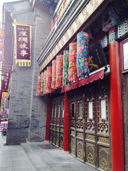 天津古文化街于一九八六年元旦建成開業(yè),整體建筑為仿清民間式建筑風(fēng)格,天后宮(媽祖廟)位于全街的中心。全街近百家店堂,有經(jīng)營天津地方特色的楊柳青年畫的楊柳青畫社,經(jīng)營泥人彩塑的泥人張彩塑工藝品經(jīng)營部,有經(jīng)營文房四寶,名人字畫的四寶堂,春在堂,有經(jīng)營文物古玩的文物公司萃文齋門市部,還有經(jīng)營全國各地的景泰藍(lán),雙面繡,牙玉雕,藝術(shù)陶瓷,中西樂器金銀飾品等上萬種名優(yōu)工藝品的幾十家店堂,各種商品貨真價實,物美價廉,商家以質(zhì)量和信譽(yù)吸引中外游客。