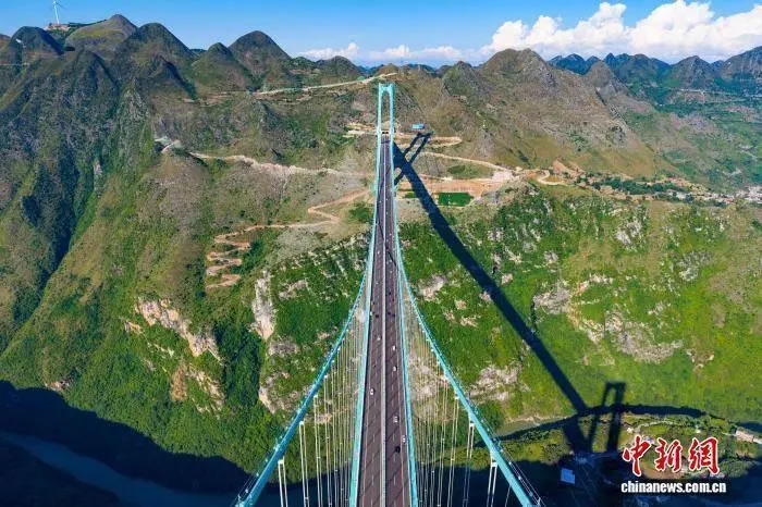 9月28日,世界第一高橋——貴州六枝至安龍高速公路花江峽谷大橋正式通車運營。(無人機照片) 中新社發(fā) 龍建睿 攝