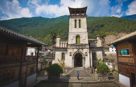 茨中教堂,位于云南省迪慶藏族自治州德欽縣茨中村。始建于清同治六年(1867年),原在自菇村,法傳教士主持興建。清光緒三十一年(1905年),焚毀茨姑教堂。清宣統(tǒng)元年(1909年)修建茨中教堂,歷時12年竣工,建成后即成為天主教云南鐸區(qū)主教禮堂。