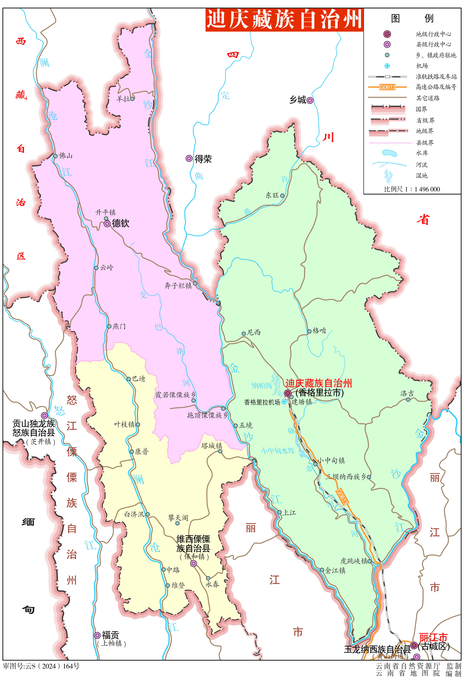 迪慶藏族自治州轄1個縣級市、1個縣、1個自治縣: