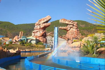 鱷魚河漂流是世界恐龍谷水上游樂項目,乘坐橡皮筏從神秘而壯觀的巨巖瀑布下起漂——在急流回旋、跌宕起伏的鱷魚河中地漂行,穿越“侏羅紀(jì)叢林”、漂過 “恐龍部落”、在龜、鱷出沒的沼澤地帶徊旋。。。。。。。。。漂流十五灘,一灘連一灘!是一次完全不同于大江大河漂流的有趣體驗,既讓你漂得酣暢淋漓,卻又有驚無險,樂不可支!