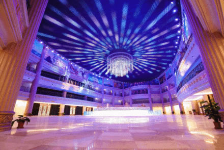 薈萃各式餐飲商品、頂部為一整塊環(huán)繞的天幕,場(chǎng)景逼真宏偉,令游客流連忘返、身心盡娛的時(shí)尚消費(fèi)目的地。