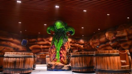 該館的“溶洞真景”位于“山之王國”地下,洞內(nèi)有石筍、石塔、石花等鐘乳石。此外,“水晶幻境”在燈光的配合之下,形成了溶洞內(nèi)的獨(dú)特景觀。