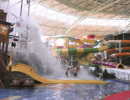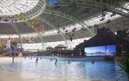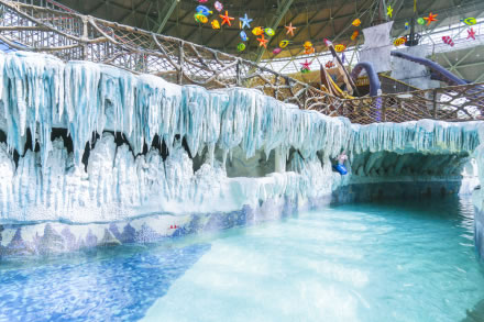 水之王國場(chǎng)館擁有室內(nèi)沙灘、超大型組合滑道(異域湍流)、冰谷漂流等項(xiàng)目設(shè)施。
